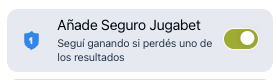 Hacé una apuesta combinada en 3 eventos o más y en tu cupón de apuestas verás la opción de activar el seguro Jugabet. Cuando quede activado podrás hacer tu apuesta con esta opción. Es clave que te asegurés que la opción está áctiva.